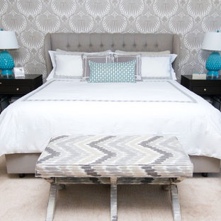 Gray Contemporary Bedroom Donning Walls Covered In Farrow Ball