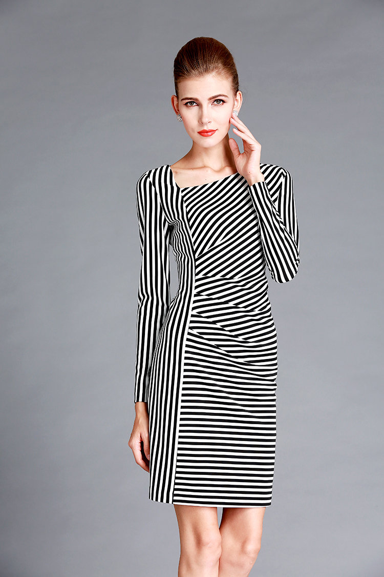 Monochrome Striped Dress Stylish Black White Fashion Photography