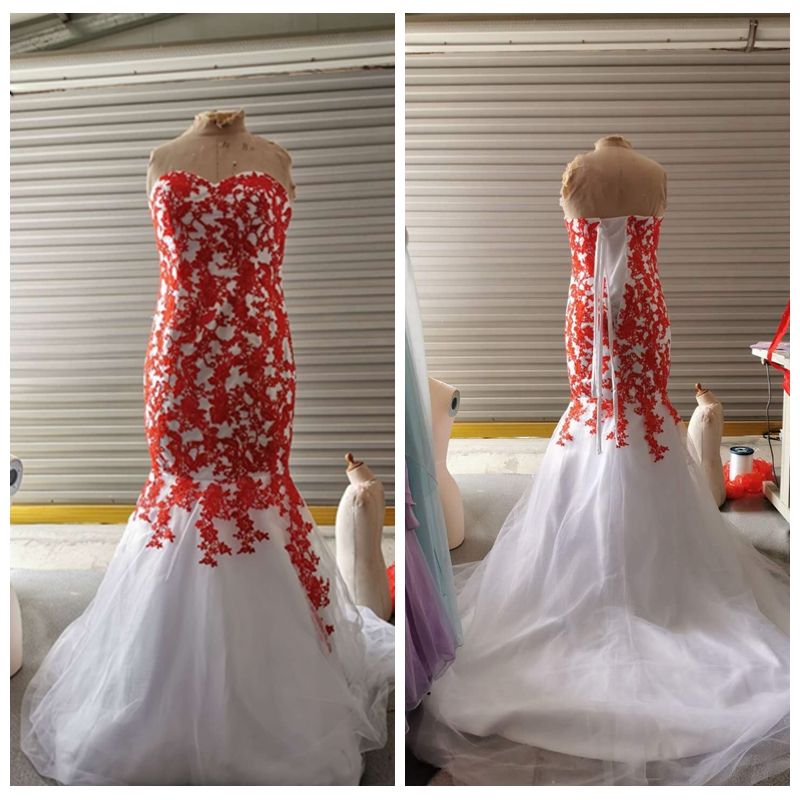 Lace Red And White Wedding Dresses