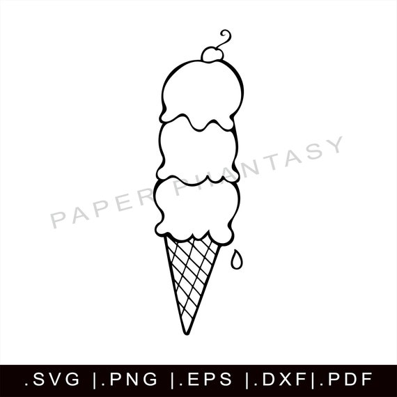 Triple Scoop Ice Cream Cone Svg Outline Sprinkles Vanilla Etsy