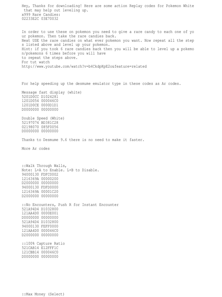 Action Replay Tutorial Ds Pokemon White 2 Rare Candy Code Us