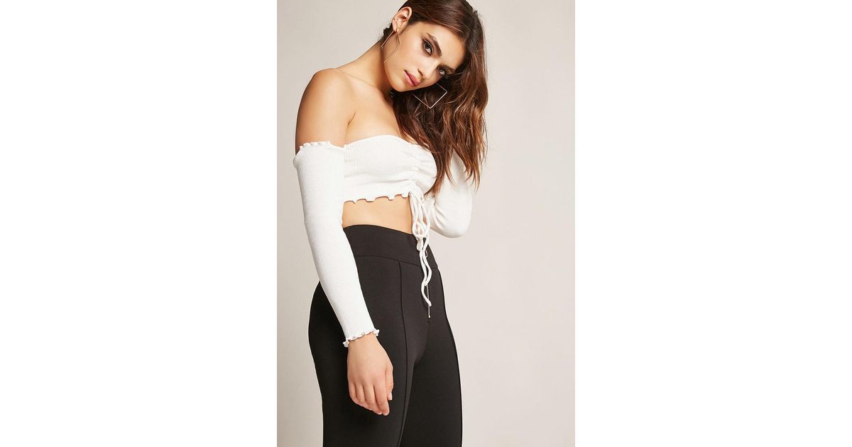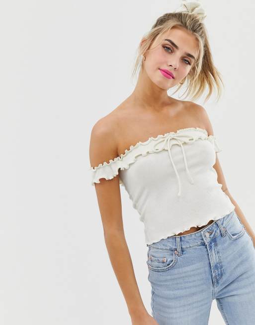 Bershka Ribbed Off The Shoulder Top In Off White Asos