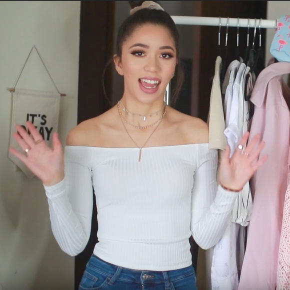 New Brandy Melville White Crop Ribbed Off Shoulder Ellery Top Nwt
