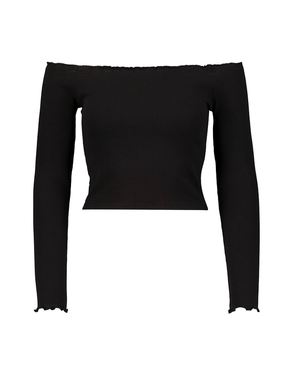 Po213 Ribbed Black White Long Sleeve Off Shoulder Crop Top