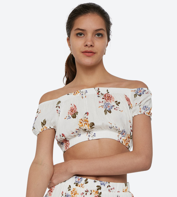Forever 21 Floral Eyelet Off The Shoulder Crop Top White Goofash