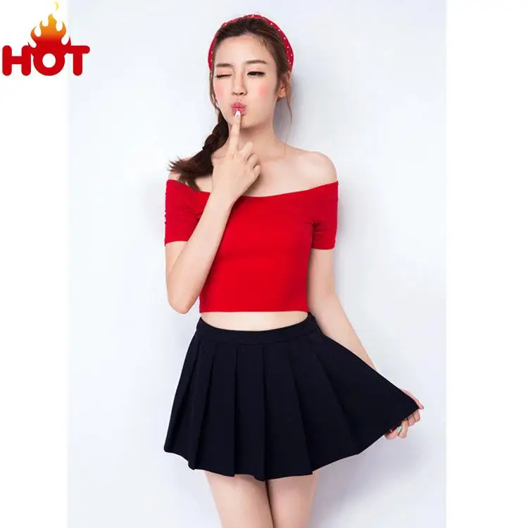 Women Korean Fashion Off Shoulder Smocking Short Sleeve Casual