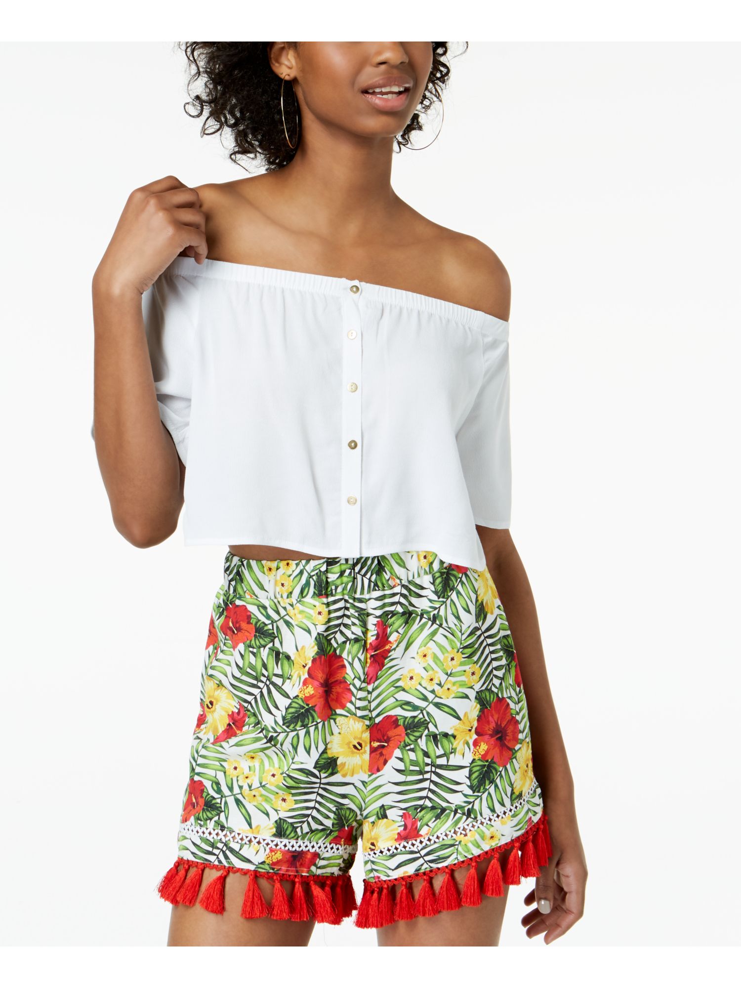 Xoxo Womens White Off Shoulder Short Sleeve Crop Top M Juniors