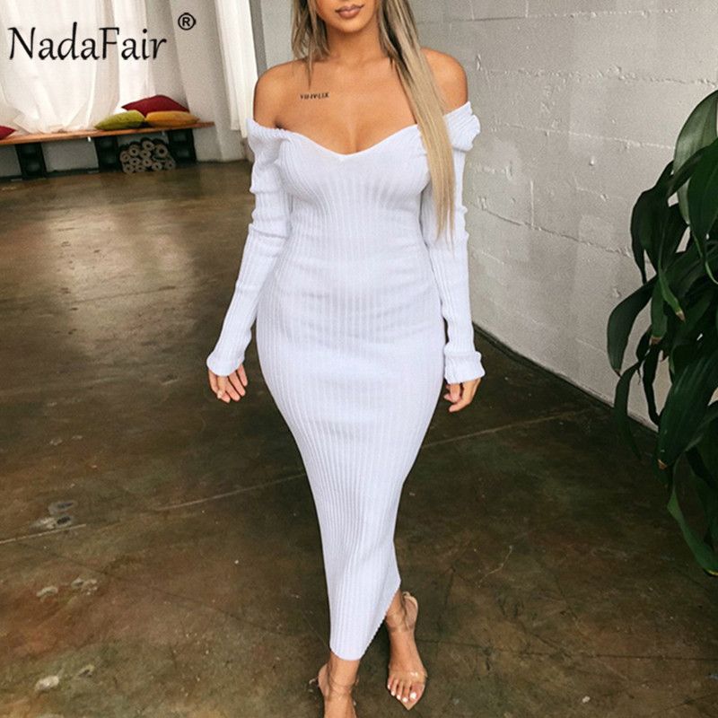 White Off Shoulder Bodycon Midi Dress