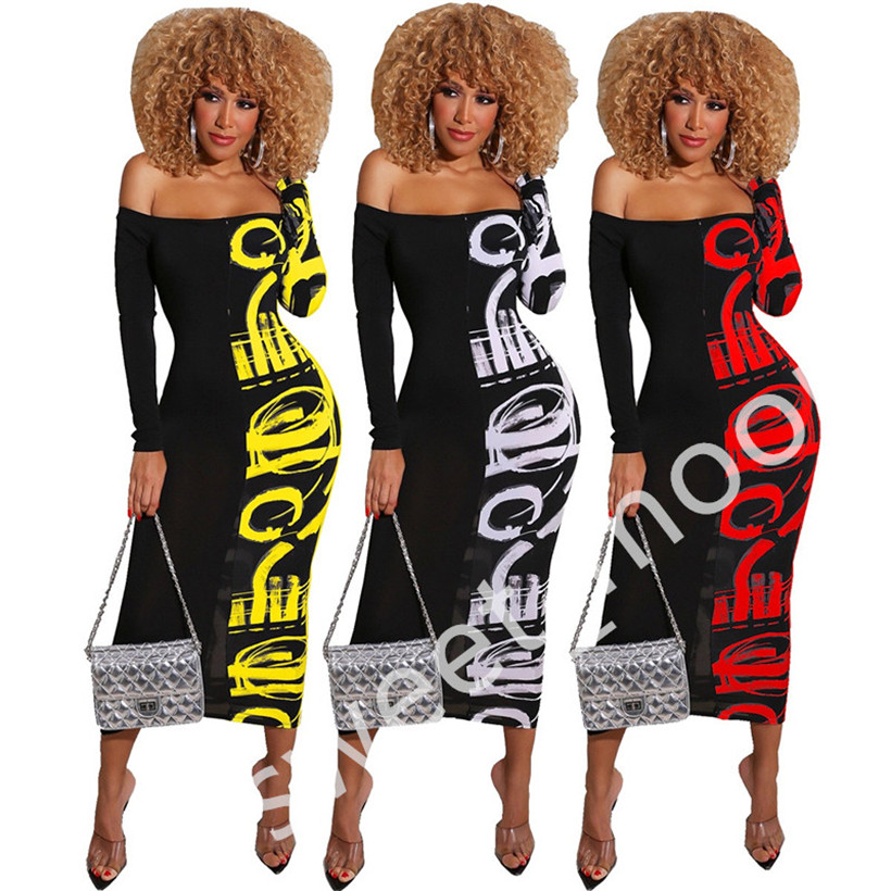 Akira Off Shoulder Bodycon Long Sleeve Optical Illuision Midi
