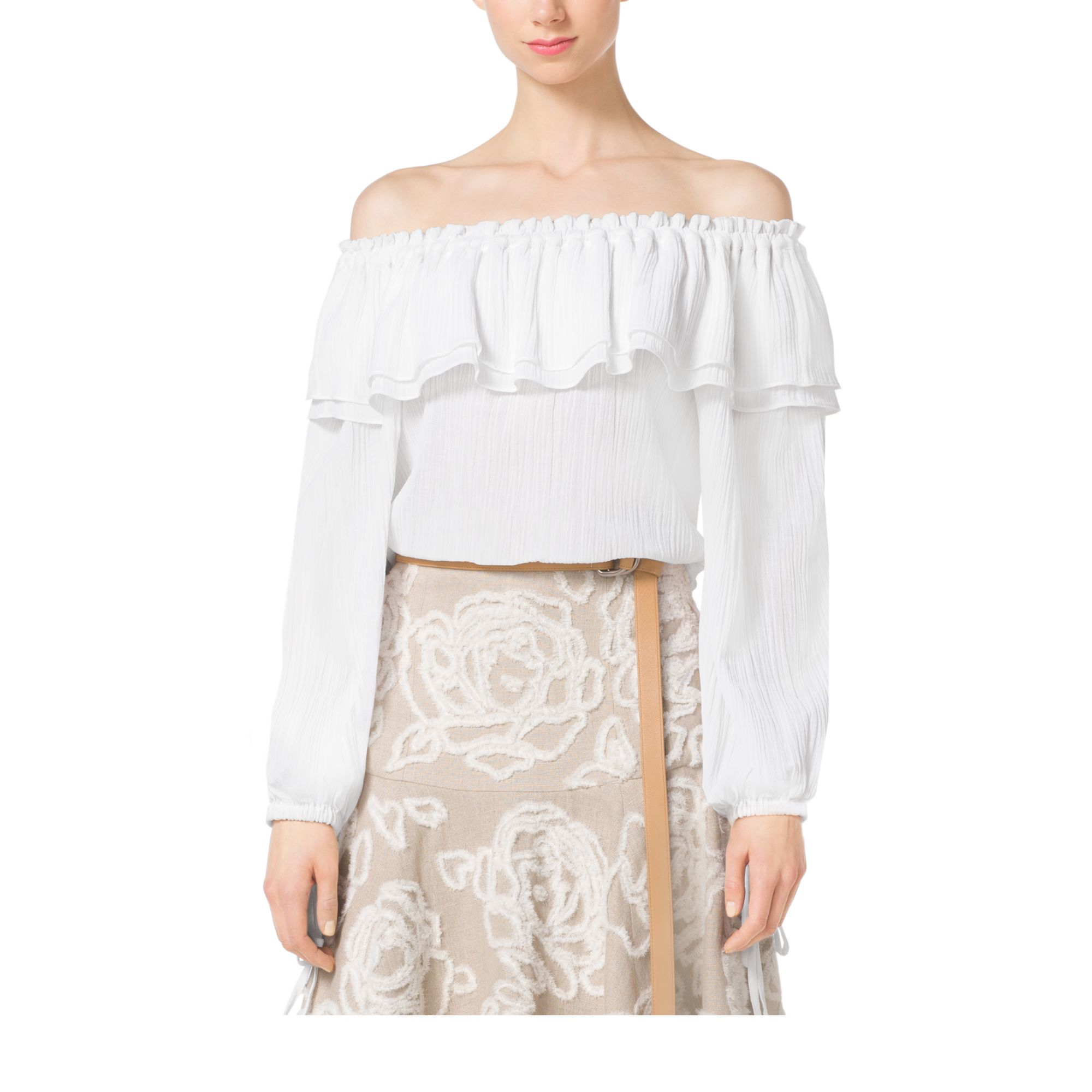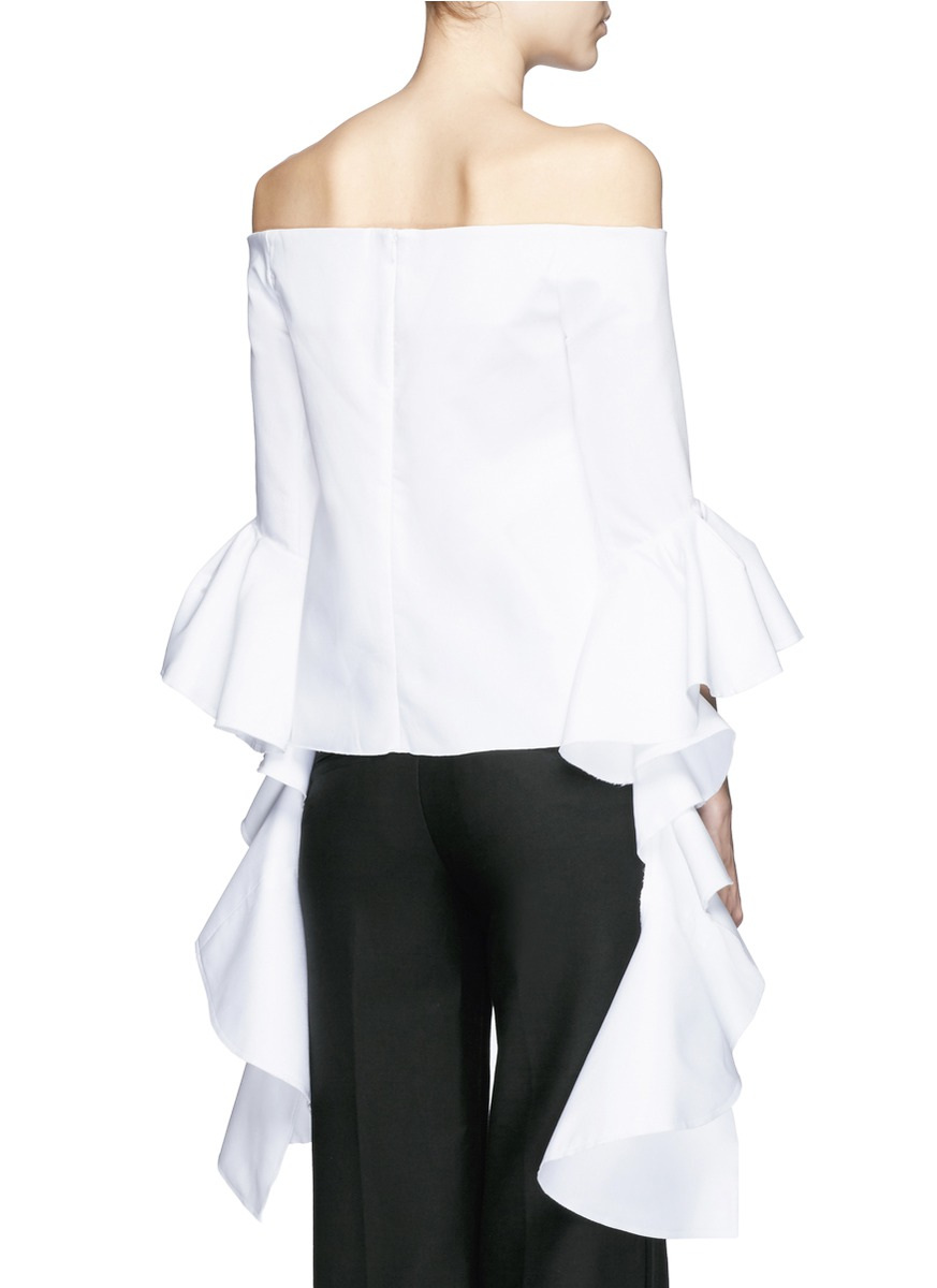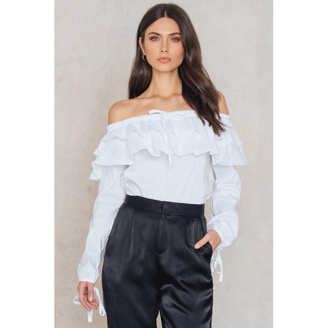 White Off Shoulder Ruffle Blouse Rldm